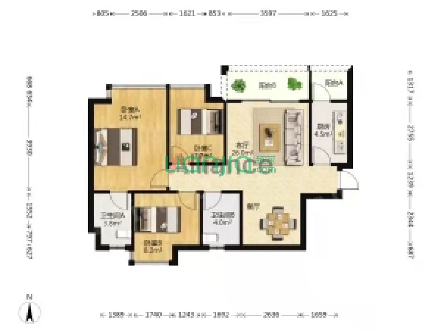 碧桂园山河城,3室1厅1卫 115㎡